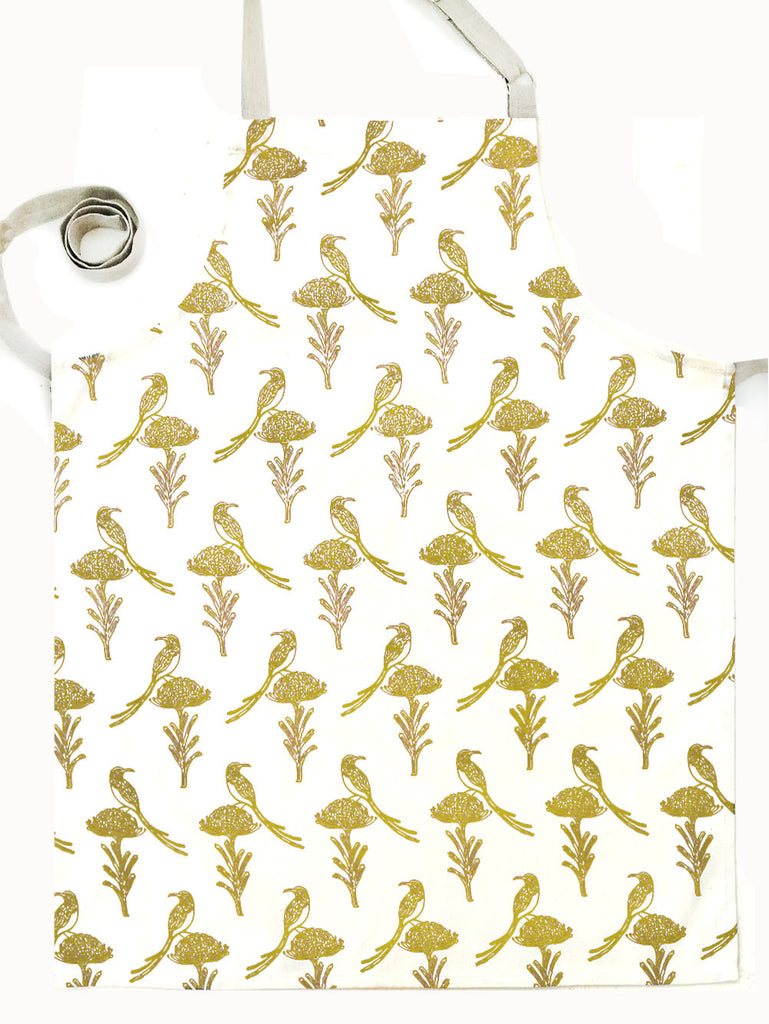 Bring artistry and tranquility into your kitchen with French Home’s Sugarbird chartreuse apron, designed by Carole Nevin. Handcrafted from 100% cotton twill, this apron features the enchanting Cape sugarbird delicately perched on South Africa’s bold and beautiful pincushion flower in a fresh and contemporary chartreuse color. Thoughtfully designed for everyday use, the apron includes an adjustable neck strap, long waist ties, and practical front pockets. Each apron is handprinted and crafted by skilled artisans resulting in subtle variations. Perfect for gifting or adding a refined touch to your kitchen.