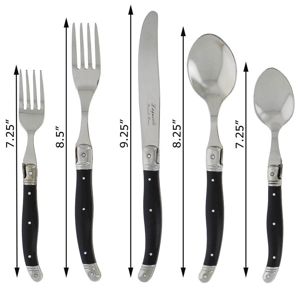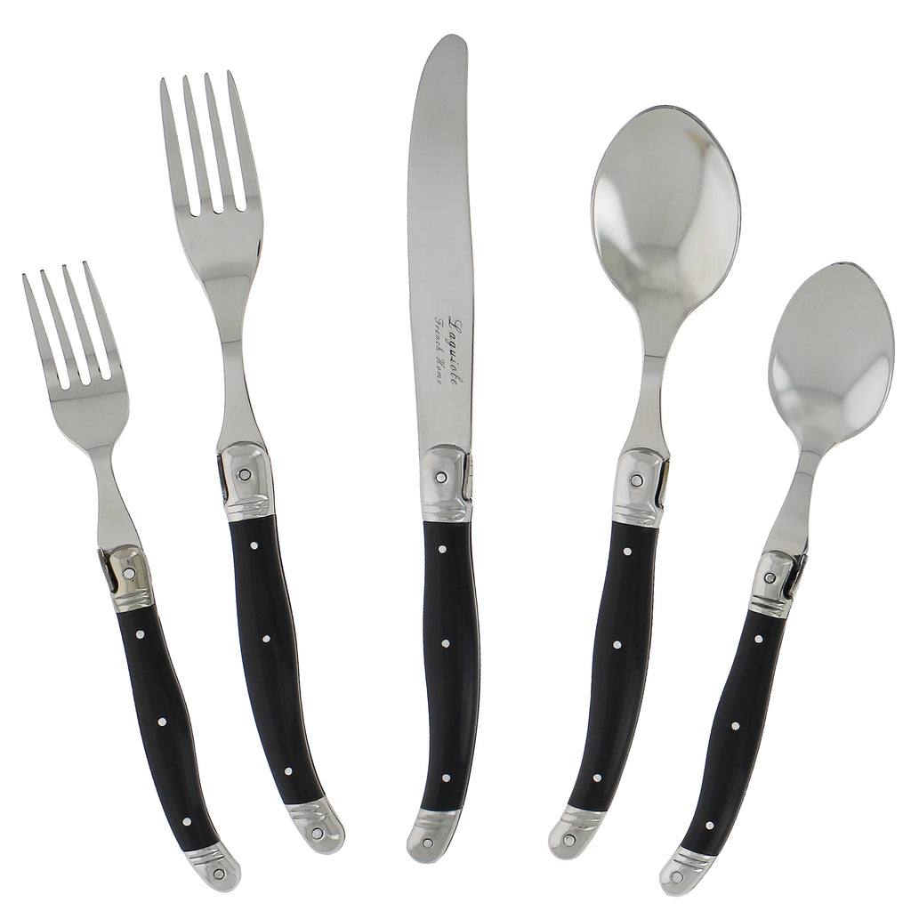 French Home Laguiole 20 Piece Stainless Steel Flatware Set, Service for 4, Black